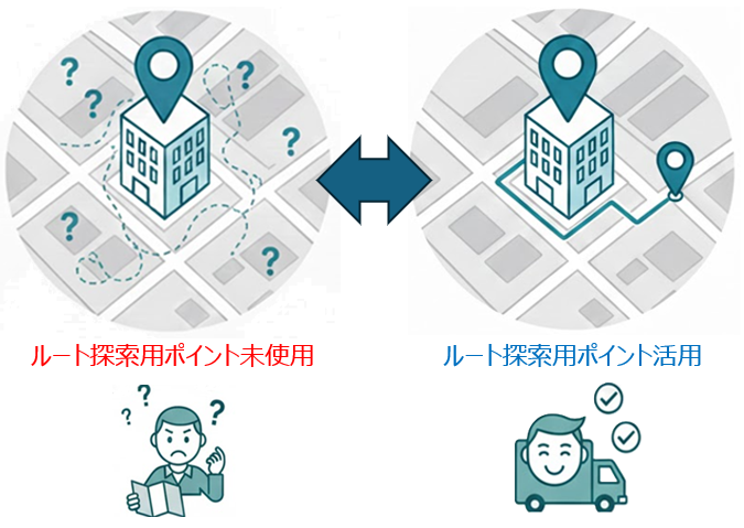 配送先の入口まで正確に誘導できるため、配達時間の短縮や効率化に直結。誤誘導や周辺道路での待機時間を削減し、物流コストの最適化と配送品質の向上を実現します。